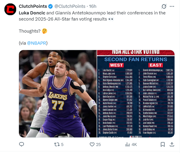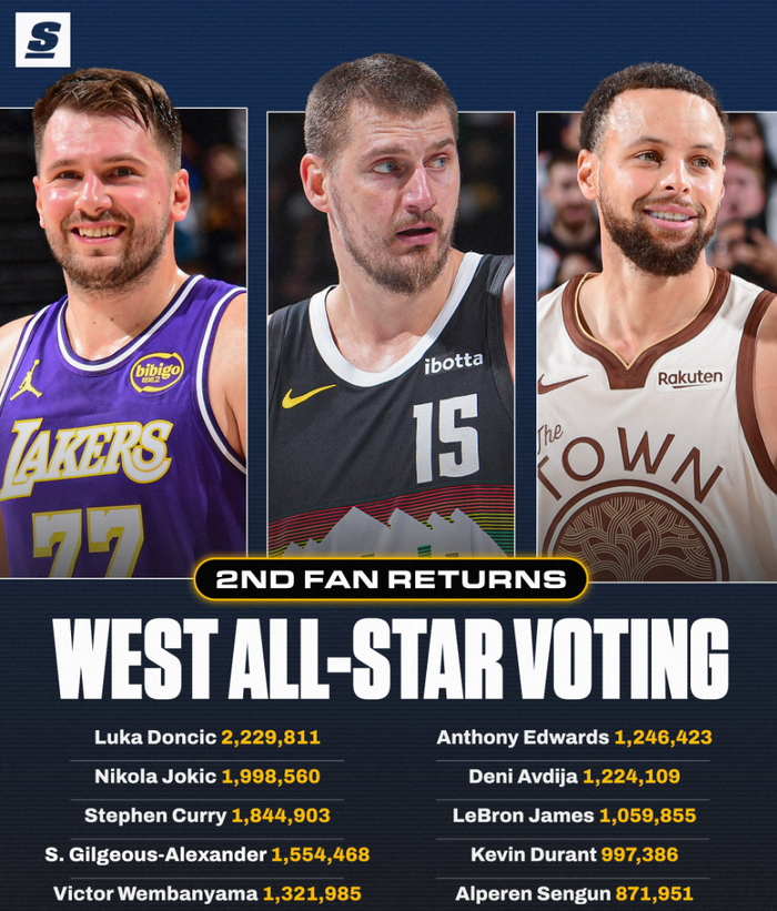 虽然防守依旧是东契奇的软肋,但他的全明星票数2229811依旧是联盟第一的存在,两轮后东契奇还是全明星票王。